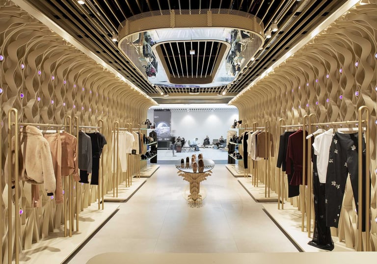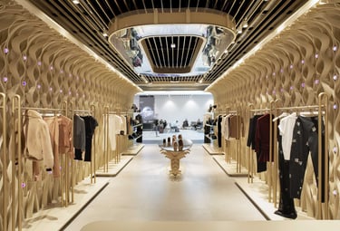 We focuses on functional spaces that attract customers and enhance the shopping experience. It combines layout, lighting, and displays to drive sales and brand identity.